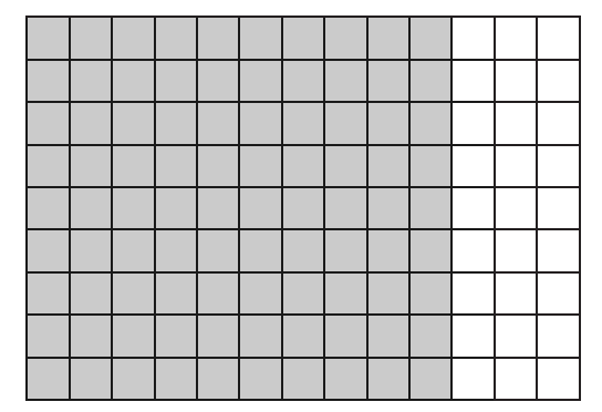 Write TWO equations to show how you could find the area of this large rectangle. (HINT: One equation for the shaded part, one equation for the unshaded part)