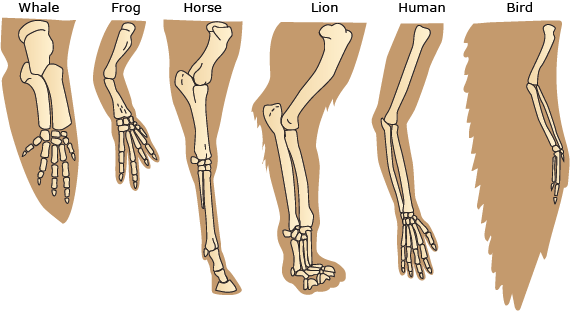 In cats, the bones in the legs involved in walking are very similar to the bones of whales' flippers that are involved in swimming. These are examples of —