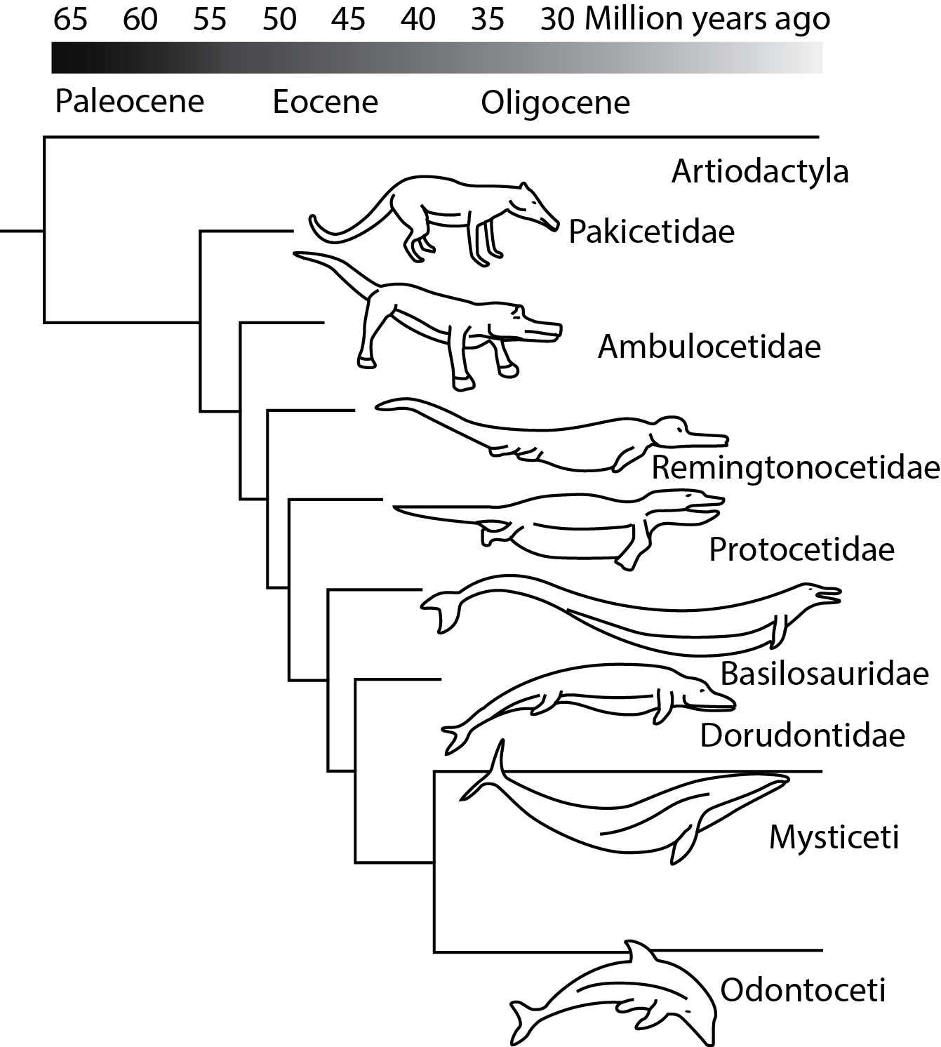 The cladogram shows the evolution of an aquatic mammal indicated by the fossil records.