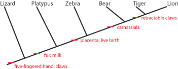 organisms that are farther on the left of a cladogram have __________ shared characteristics than organisms that are farther on the right.
