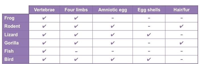 Give a characteristic that chimps and mice have in common, but that chimps and pigeons do not.