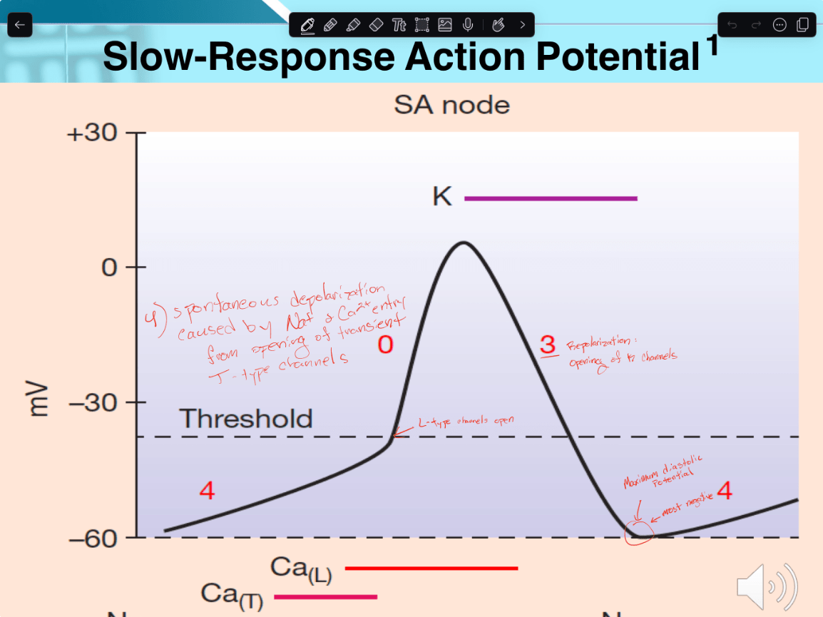 What stage in slow response action potentials do calcium channels switch from T-type to L-type channels?