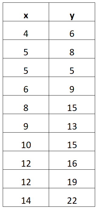Find the correlation coefficient of the following: