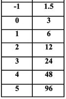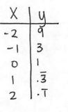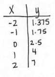 Create a table for the following Exponential function using -2, -1, 0, 1, and 2 for your x values
