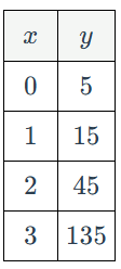 Write an exponential function in the form y=abx that goes through the points (0,15)and (2,735).
