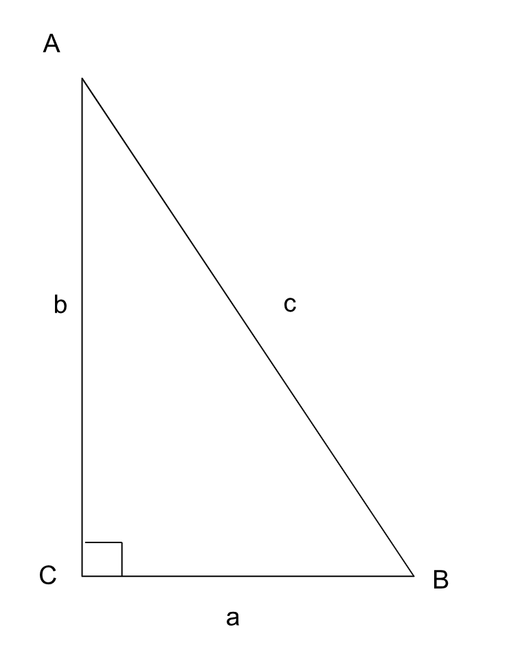 Name each of the sides (Opposite, Edjacent, Hypotenuse) in relation to to ANGLE A.