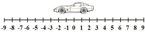 A student is measuring and graphing the motion of a toy car. The car moves to the left with constant velocity along the number line as shown.