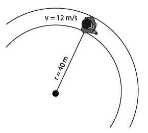 The diagram represents a speed skater traveling at a constant speed of 12.0 meters per second around a horizontal, circular curve with a radius of 40 meters. The mass of the skater is 65 kilograms. Use this information and the diagram to answer the following questions. What is the magnitude of the centripetal force keeping the speed skater on the circular path?