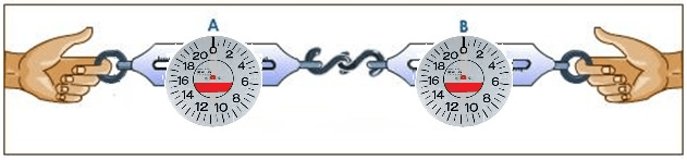 These two spring scales are pulling against each other. If spring scale A reads 18 N, what will spring scale B read?