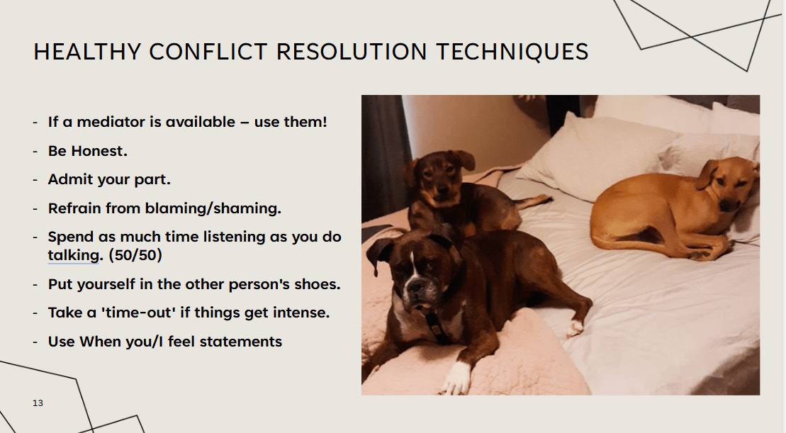 Name 2 Healthy Conflict Resolution Techniques