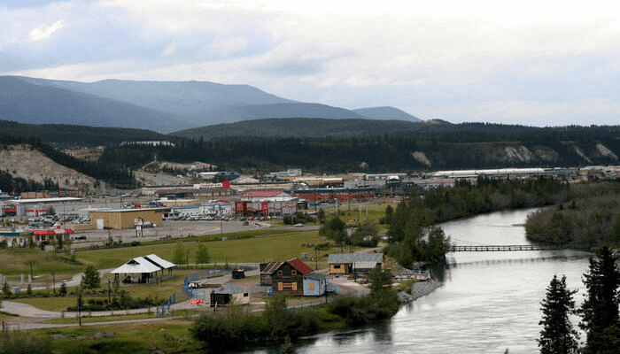 The source of this river is Atlin Lake in the British Columbia, and the mouth the river is the Bering Sea.