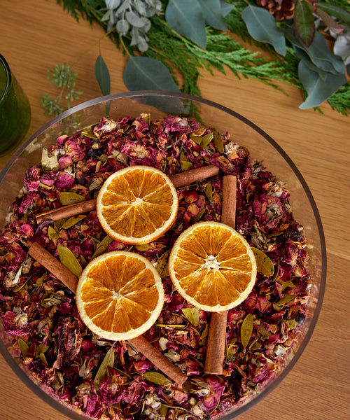 What is potpourri? You can make your potpourri with dried flower petals, bark (such as cinnamon), and herbs. To augment or refresh the fragrance, sprinkle with a drop or two of essential oil.