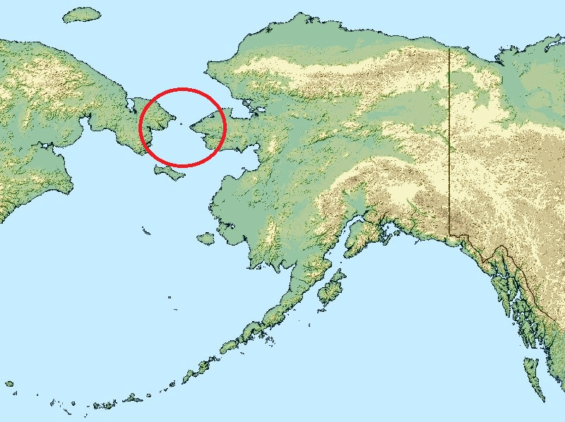 bras de mer qui sépare d'environ 83 km la Sibérie orientale de l'Alaska. C'est par ce passage gelé en hiver que les premiers humains sont arrivés en Amérique.