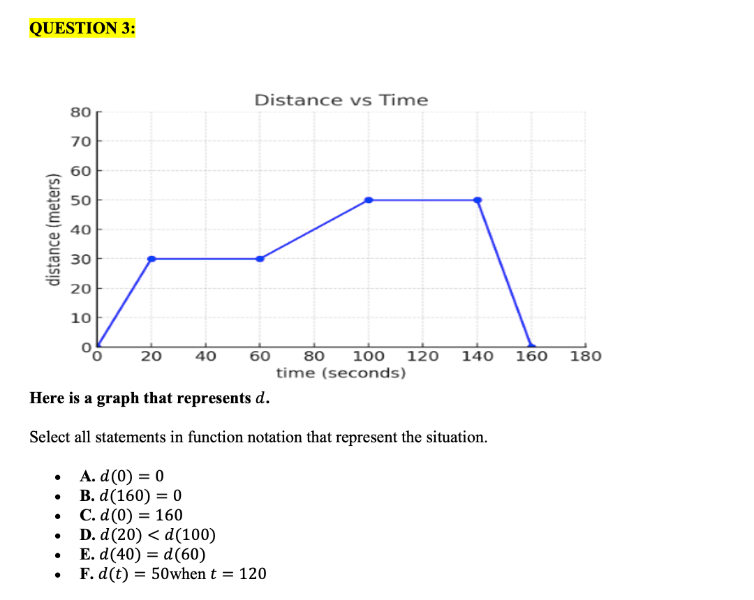 From 140 to 160 seconds, it drops sharply from 50 to 0 meters.