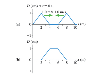 In the figure shown, (a) shows a snapshot graph at t=0 s of two waves approaching each other at 1.0 m/s. At what time was the snapshot graph (b) taken?