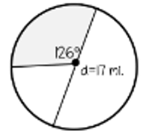 The shaded area of the circle with the minor arc of 126o and diameter of 17 miles.