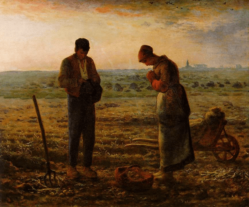 Using an X-ray, which object did Salvador Dali discover hidden under layers of paint from this Jean-Francois Millet painting of a farmer couple?