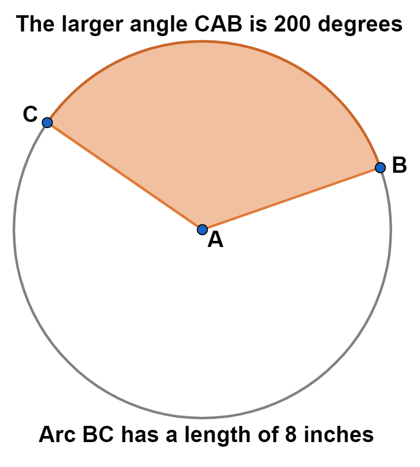 Smaller angle CAB = 360 - 200 = 160