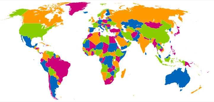 If you colored a world map by countries (ex: US is yellow, Canada is green, etc.), how many colors would you need to use to ensure no two countries of the same color border each other (ex: US and Canada cannot both be green, as they border each other)?