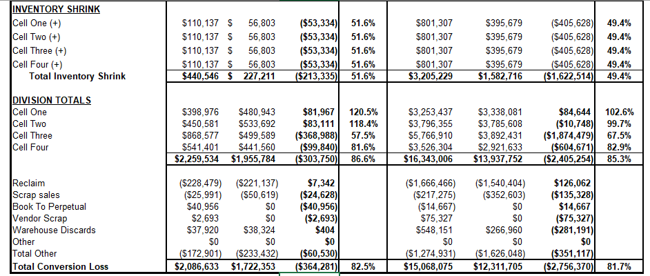 What are Materials, Direct Labor, Conversion Loss and Overhead?