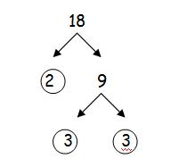 Draw a diagram and write an exponent expression to show the prime factorization of 18.