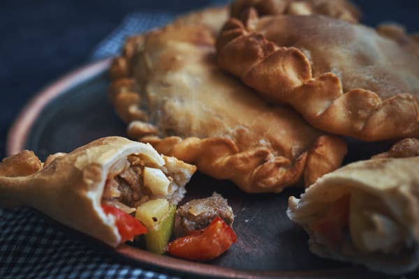 Argentinean empanadas are made with a flour dough. They are filled with beef, chicken, ham and cheese, sweet corn or swiss chard and cheese before being sealed into a turnover.