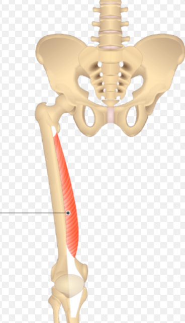 What muscle flexes the knee and is located on the anterior portion of our leg?