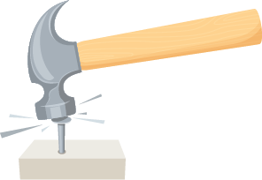 he is transferring energy from his _ARMS/ HANDS_ to the _NAIL__