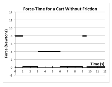 A force is only acting in the time intervals from 0 seconds to 1 seconds, from 3 seconds to 6 seconds, and from 9 seconds to approximately 9.5 seconds.