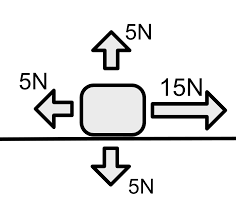 The box would be moving to the right, because the net force is 10 Newtons to the right. It is not moving up or down because those forces are balanced (equal).