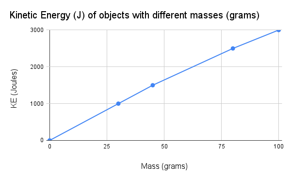 Examine the graph of mass vs KE (top) compared to speed vs KE (bottom). What is one similarity and one difference between these graphs?