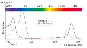 Hvad er at klorofyl A og B binder lys ved forskellig bølgelængde men begge med violette og røde farver og kaster det grønne?