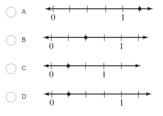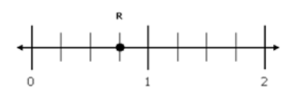 Which of the following options describe the fraction represented by point M on the number line? Pick TWO that are correct.