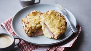 Un sandwich français avec du jambon, du fromage et un œuf poché.