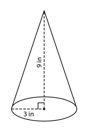 Find the volume of the cone with a height of 15 in and a diameter of 6 in. Express your answer in terms of π