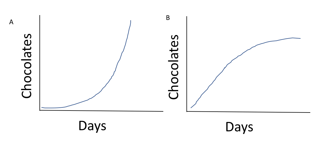 The amount of chocolates I eat each day increases at a decreasing rate. Which graph best models this situation?