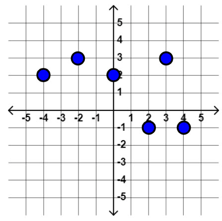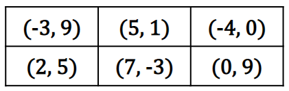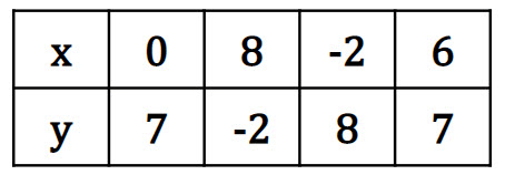 What is: (7, -3), (-4, 0) and (2, 5)?