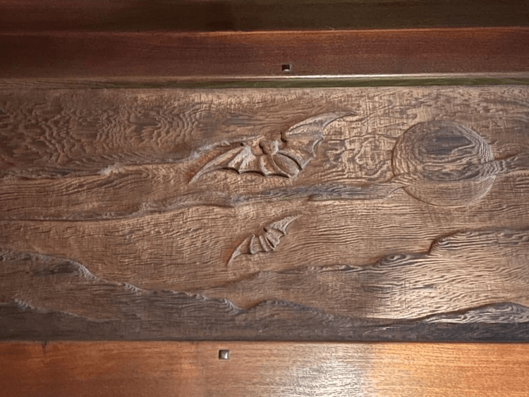 He wanted to be an artist and is credited with drawing designs for area rugs, art glass, and the carved friezes in the living room.