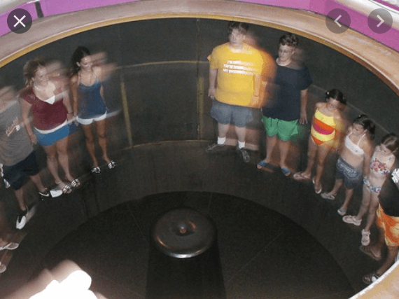 There are two rides at Canobie Lake Park that consist of a spinning motion to force the visitors to "stick" to the wall. One of which is Zero Gravity and the other being this ride shown below.