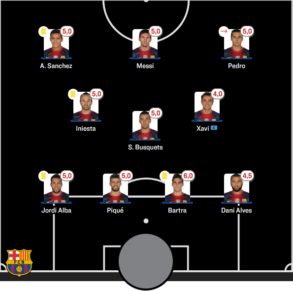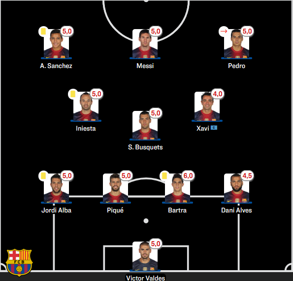 Welcher Spieler aus der 2012/13 Champions League Halbfinal Aufstellung von Barcelona fehlt hier?