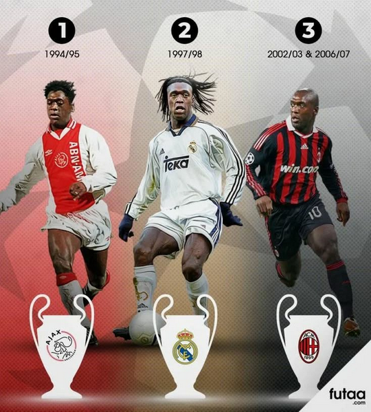 Nur ein einziger Spieler hat die UEFA Champions League mit drei verschiedenen Vereinen gewonnen (Ajax, Real Madrid, AC Mailand).