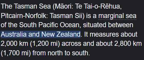 The Tasman Sea is located between which two countries?