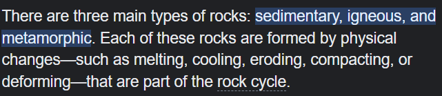 Sedimentary, igneous, and metamorphic.