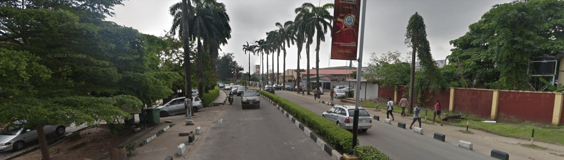 When you are passing the Katuru Car Dealership on Abeokuta Expressway, what else can you see, and when was was it built?