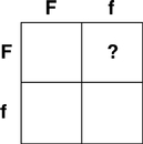 The Punnett square below is set up to determine the probability of the child of a certain couple having freckles. Which of the following belongs in the upper-right square?