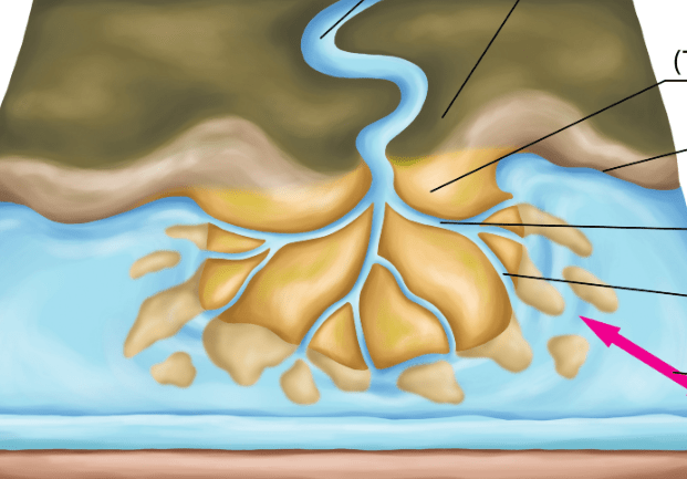 This triangular landform is created at the mouth of a river as it slows down and deposits soil into the ocean or a larger body of water.