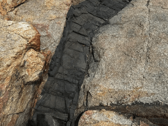This pictures shows a fracture that crosses through various layers of rock strata. Which came first, the rock layers or the fault?