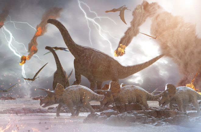the evidence we have that meteorites and volcanoes made the dinosaurs go extinct