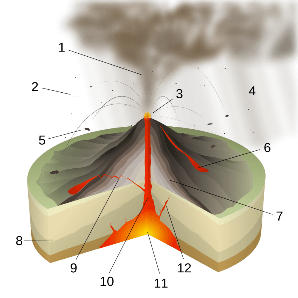 Seen below, number 11 is pointing to this; the large underground pool of molten rock sitting underneath the Earth's crust.