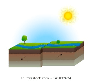 Seen here in this picture, this type of fault is created when the hanging wall moves downward compared to the foot wall. It is caused by tension forces.